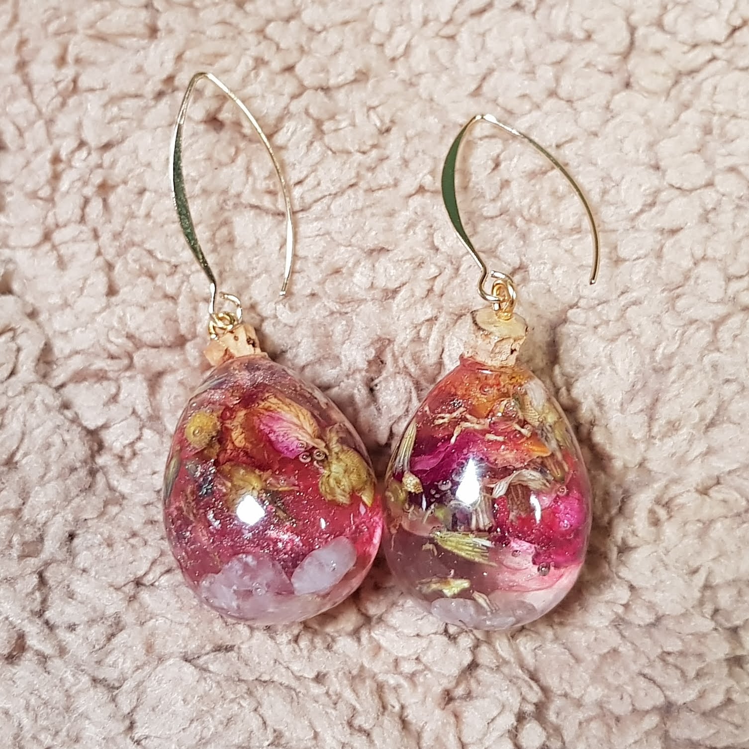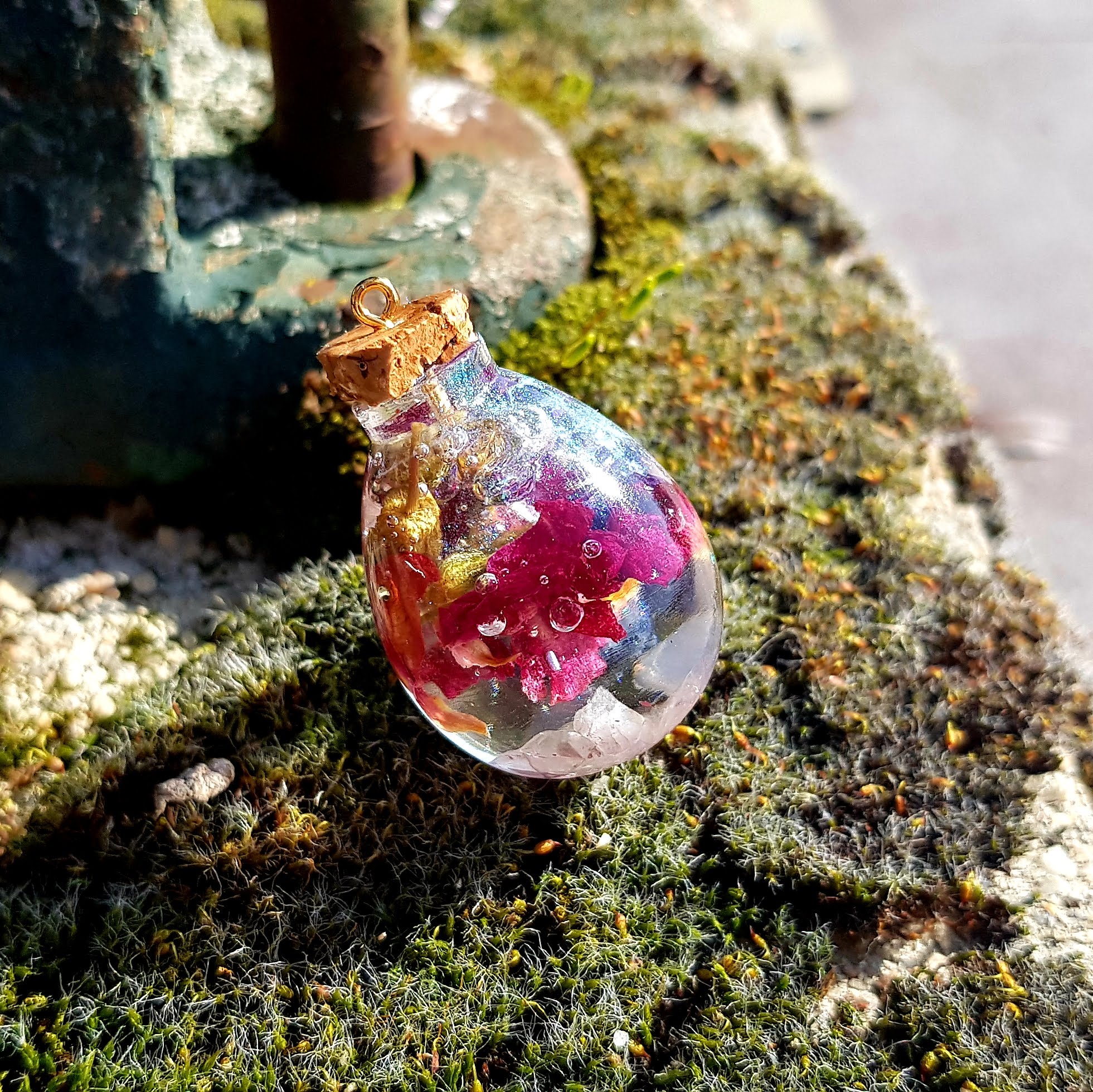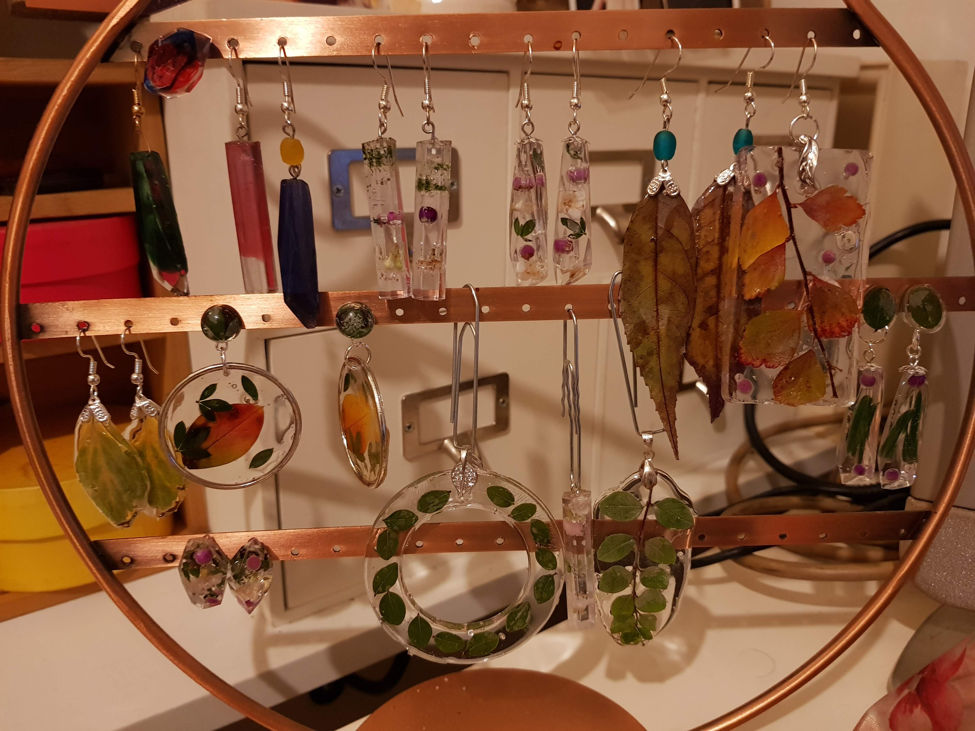 D’ailleurs, les bijoux en résine sont très légers. Les pendentifs ne pèsent pas autour du cou et les boucles d’oreilles se font oublier rapidement. Les boucles en forme de potion magique que je propose sont les seules à peser un peu après plusieurs heures de port mais c’est vraiment minime (et j’ai les lobes très sensibles)