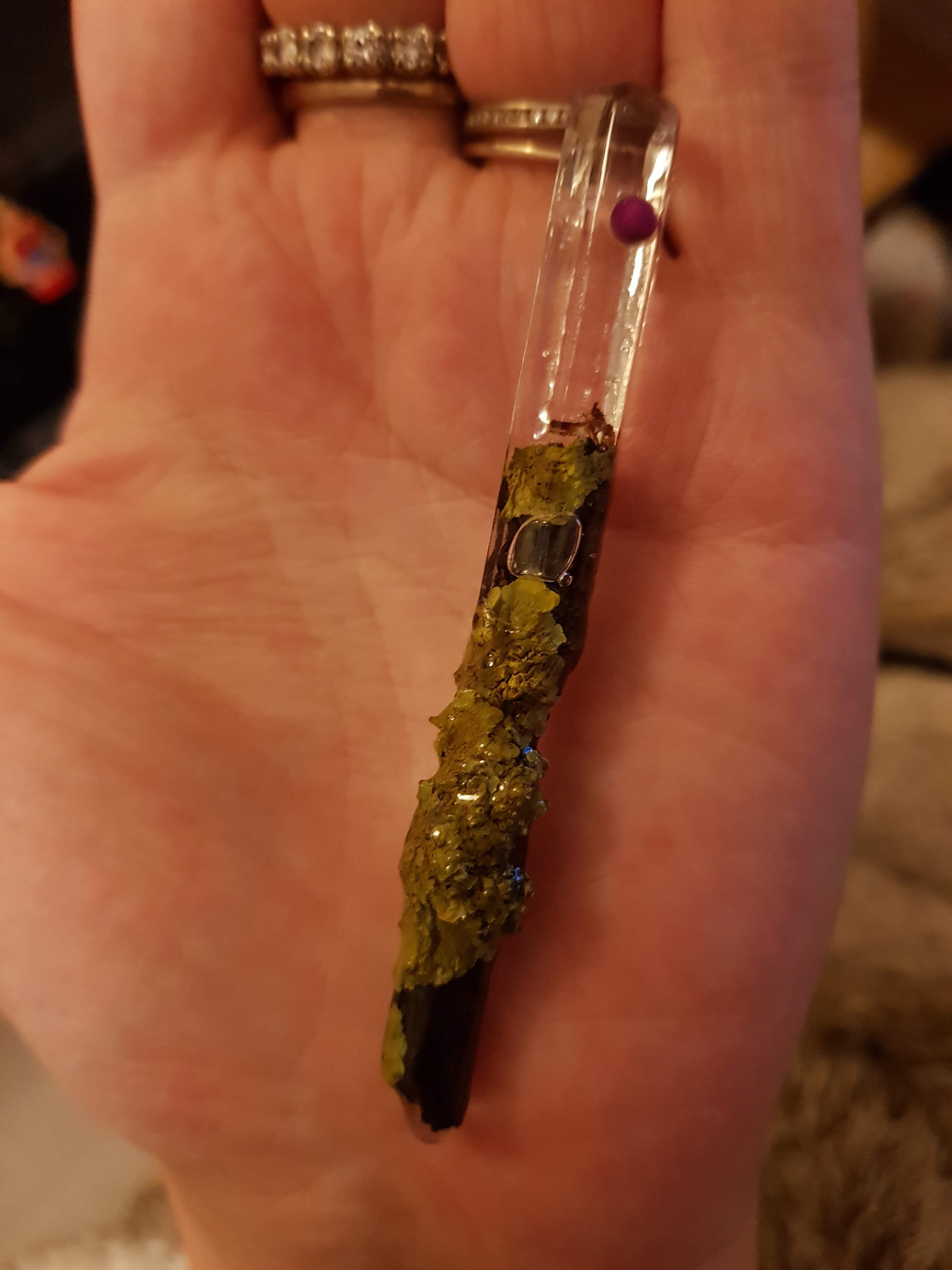 Le produit fini que ce soit un bijou, un pendule, une baguette ou tout autre objet est absolument sans danger. Une fois que c’est sec, c’est-sec. Juste on ne le met pas dans l’eau, ou dans la bouche. Là, vous vous dites peut-être que « ohmondieuc’estterriiiiiible » mais non en fait. Vous ne mettez pas vos bijoux dans votre bouche et vous vérifiez systématiquement que les objets susceptibles d’atterrir dans celle de votre enfant sont safe ? Bah là, c’est exactement pareil. Je vous mets un de mes posts instagram ci-dessous où j’expliquais notamment que l’eau et la résine ne font pas bon ménage :