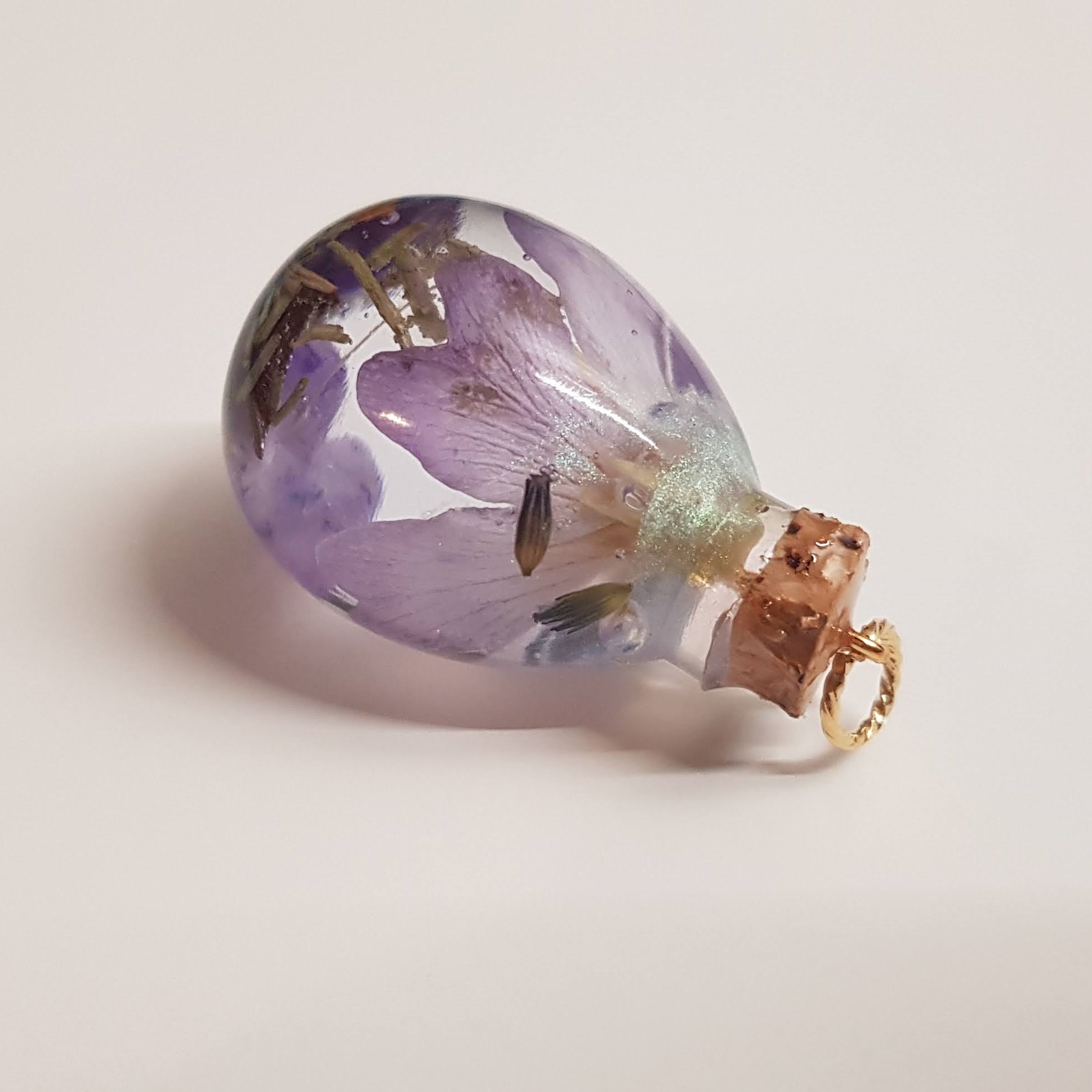 J’ai continué. A toutes les périodes de fête, la résine à toutes les sauces. J’ai tenté différentes résines, différentes marques, différents « ingrédients », de nouveaux moules. J’ai investi dans des poudres de mica, des pigments végétaux, des chips de cristaux. La résine a cela de génial pour moi : son utilisation me semble infinie et SURTOUT sa transparence me laisse systématiquement une impression de féérie, de poésie dans le temps, de légèreté …