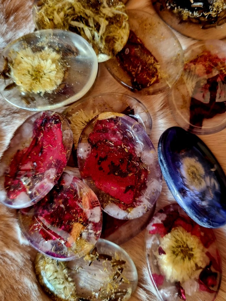 Et donc là, comme on veut se recentrer sur Soi et ressentir de l’amour pour soi, on couple la rose et la camomille. L’une change le symbole et l’énergie de l’autre et inversement.